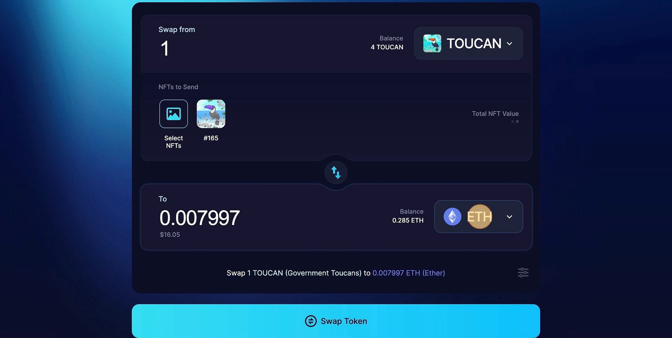 3. Once you've successfully connected your wallet, navigate to the "NFTs" tab within the Token Selection menu and choose "Government Toucans."